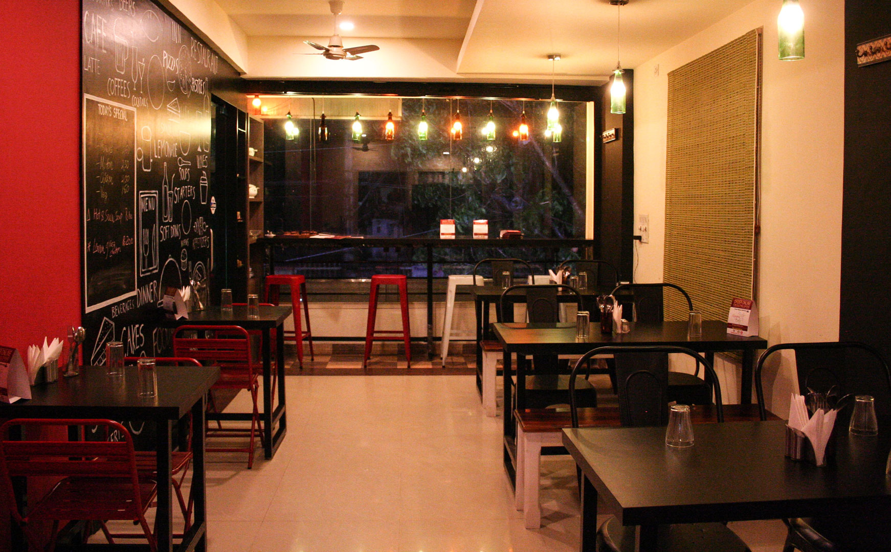 A small vibrant place executed on a shoe string budget and a tight time frame, Hungry Belly has black and red as the predominant color scheme. A large black chalk board wall created for the restaurants daily menu acts as the focal point in the space. Eclectic furniture adds to the charm of the restaurant.